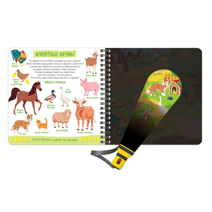Возьмите фонарик, посветите им на страницу — вы откроете тайны животного мира!