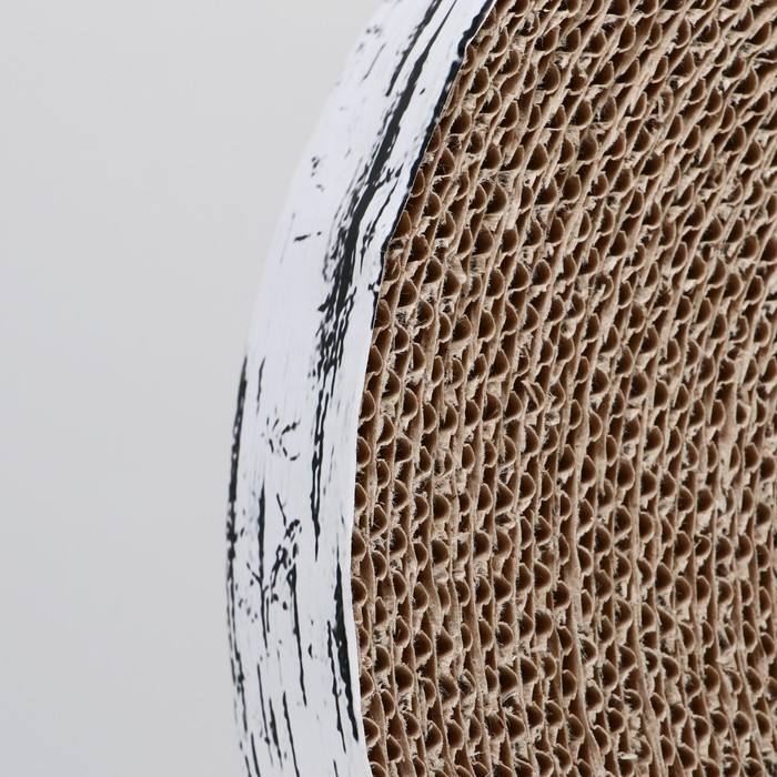 Она выполнена из гофрокартона, который изготовлен из природного материала - древесины и по своим свойствам очень на нее похож, чем и привлекают наших питомцев. Он достаточно плотен, чтобы выдержат острые коготки, и оптимально податлив, чтобы привлекать кошку.