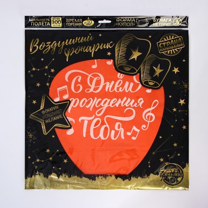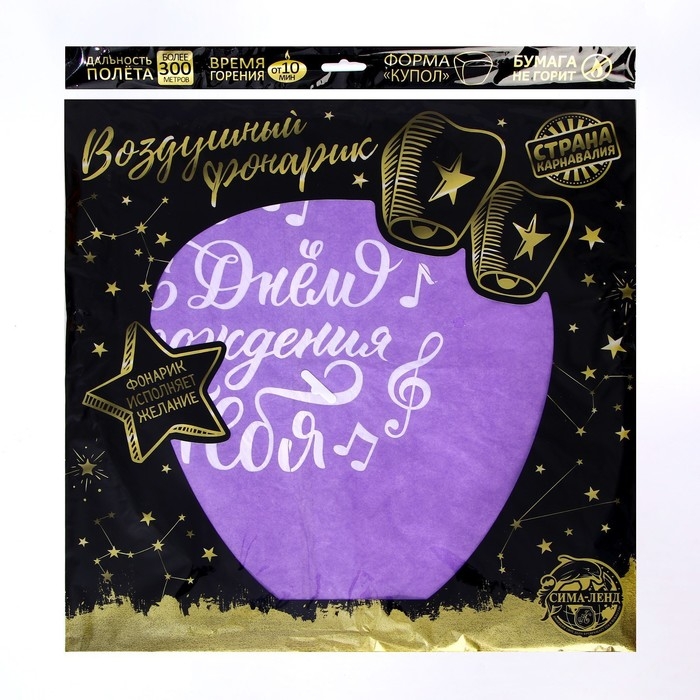 Фонарик желаний «С днём рождения тебя», ноты, форма купол, цвета МИКС