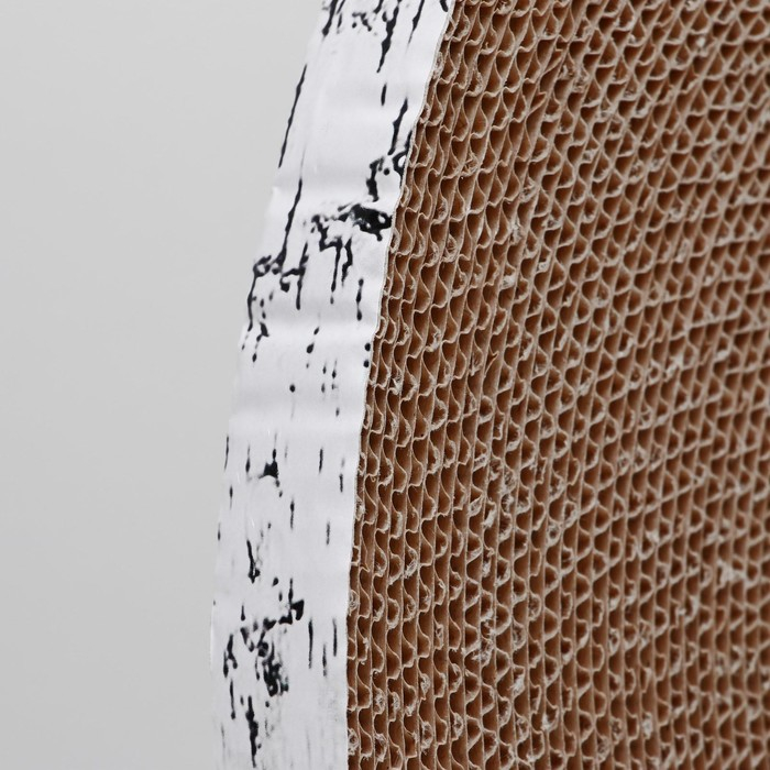 Она выполнена из гофрокартона, который изготовлен из природного материала - древесины и по своим свойствам очень на нее похож, чем и привлекают наших питомцев. Он достаточно плотен, чтобы выдержат острые коготки, и оптимально податлив, чтобы привлекать кошку.