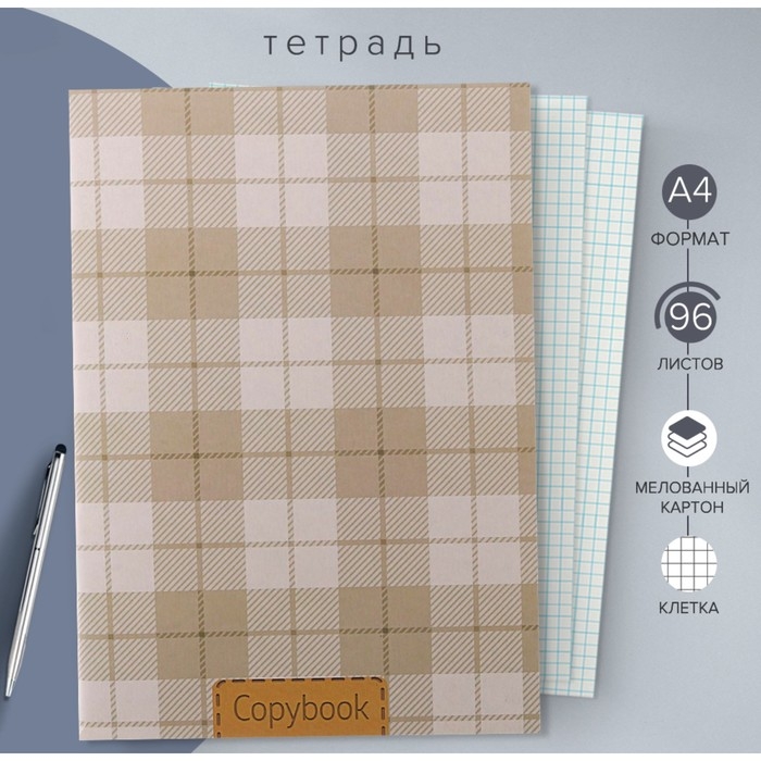 Тетрадь А4, 96 листов в клетку Calligrata "Шотландка", обложка мелованный картон, блок №2, белизна 75%, бежевая, (серые листы)