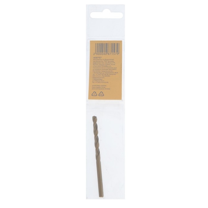 Сверло по металлу ТУНДРА, HSS-Co (5% кобальта), цилиндрический хвостовик, 4.2 х 75 мм