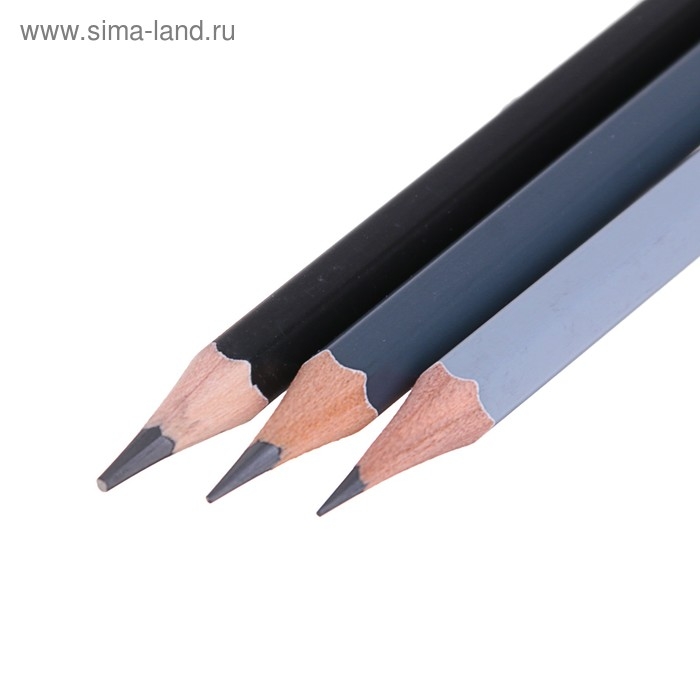 Набор карандашей чернографитных, 12 штук, твёрдость 2Н - 8В, гранённые, заточенные, в картонной коробке