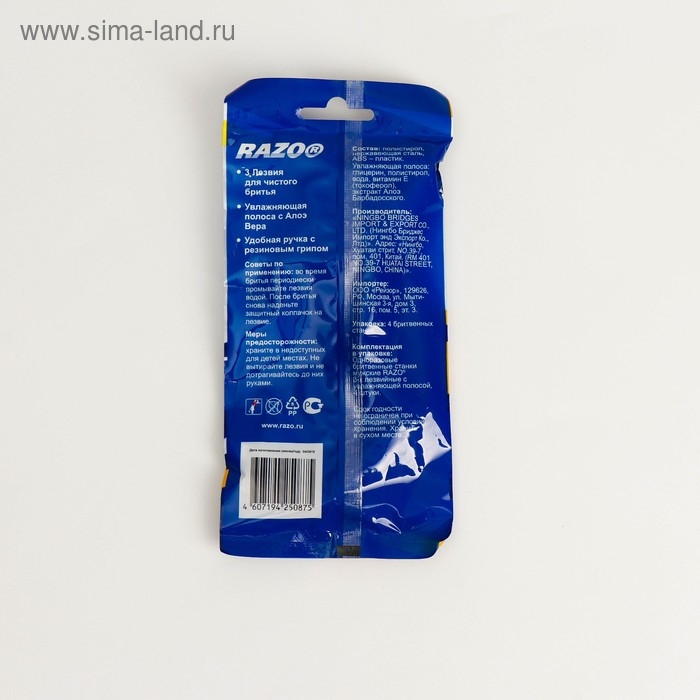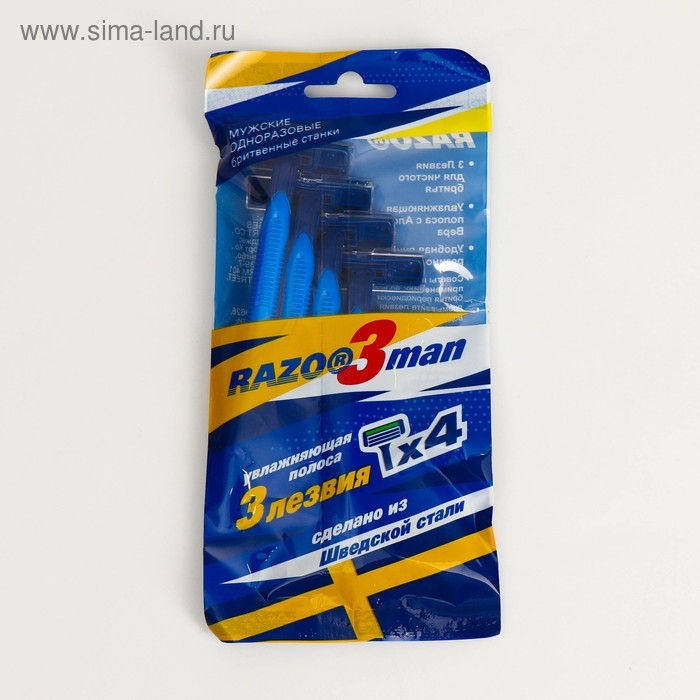 Бритвенные станки одноразовые Razo3man, 3 лезвия, увлажняющая полоса, 4 шт
