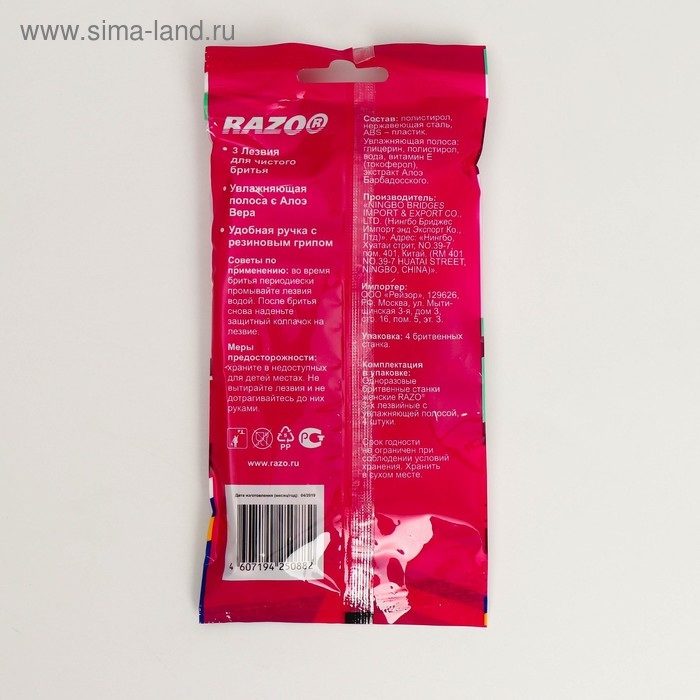 Бритвенные станки одноразовые Razo3woman, 3 лезвия, 4 шт