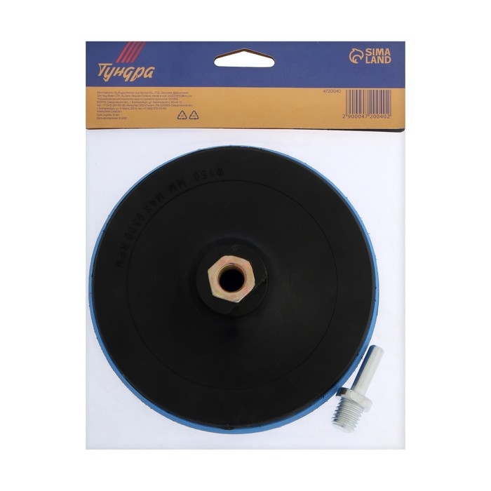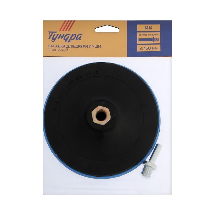 Насадка с липучкой для дрели и УШМ ТУНДРА, М14, с адаптером, 150 мм