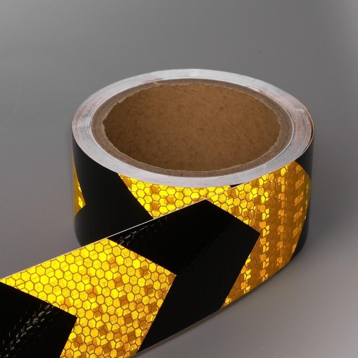 Светоотражающая лента, самоклеящаяся, черно-желтая, 5 см х 5 м