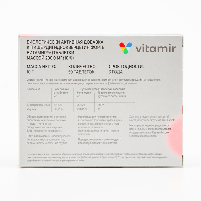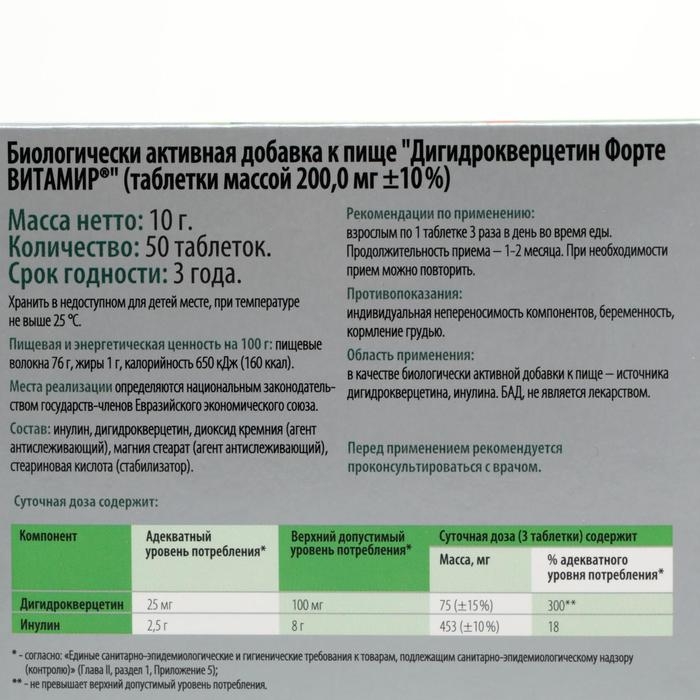 Дигидрокверцетин «Витамир», для сердца и сосудов, 50 таблеток