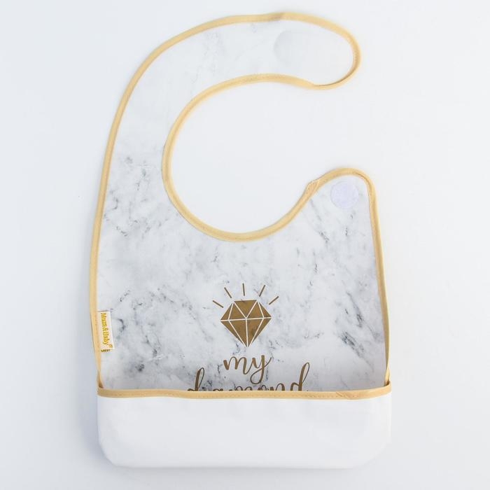 Нагрудник для кормления «My diamond» непромокаемый на липучке, с карманом