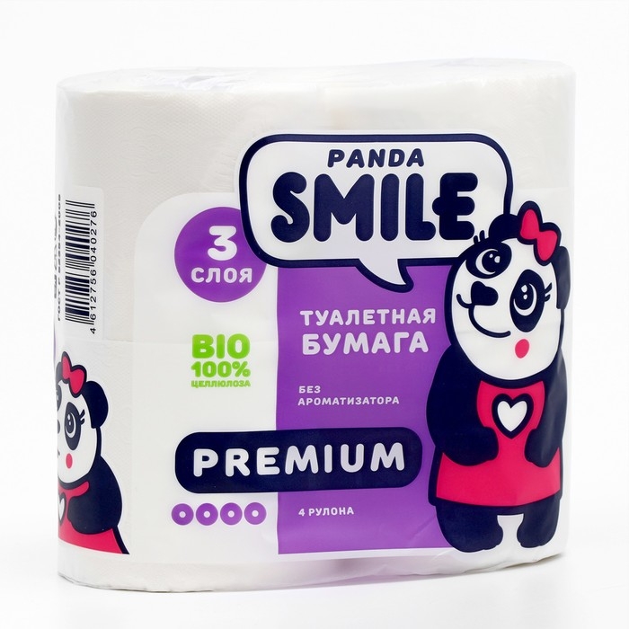 Туалетная бумага "Панда" 3 слоя, 4 рулона