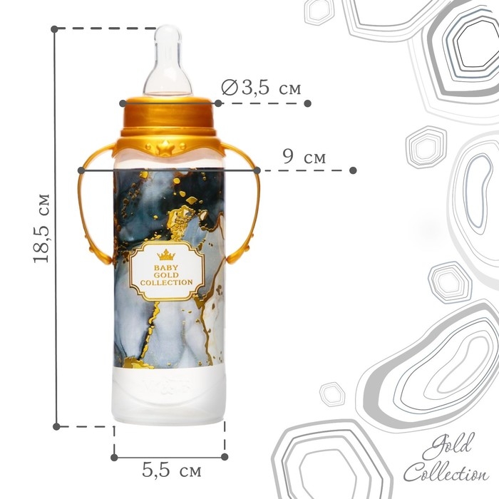 Бутылочка для кормления «Золотая коллекция: черный мрамор», классическое горло, 250 мл., от 0 мес., цилиндр, с ручками