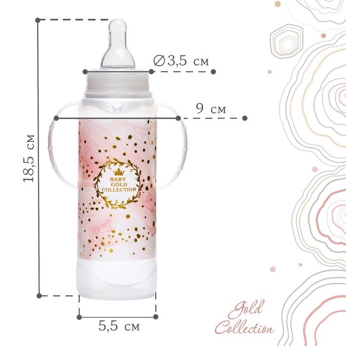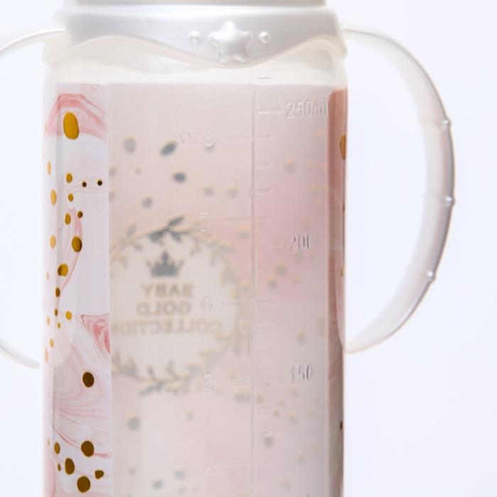 Бутылочка для кормления «Золотая коллекция: розовый мрамор», классическое горло, 250 мл., от 3 мес., цилиндр, с ручками