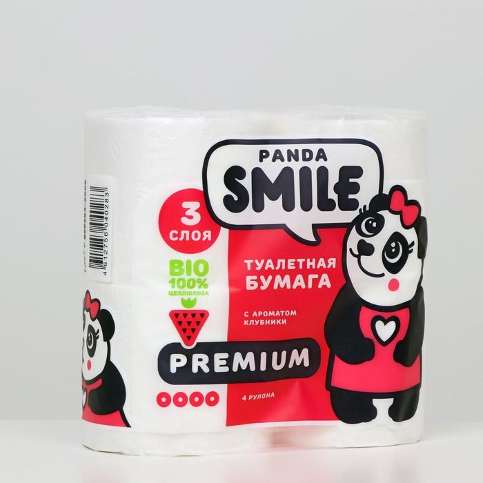 Туалетная бумага Панда Арома клубника 3 слоя, 4 рулона, 1 шт.