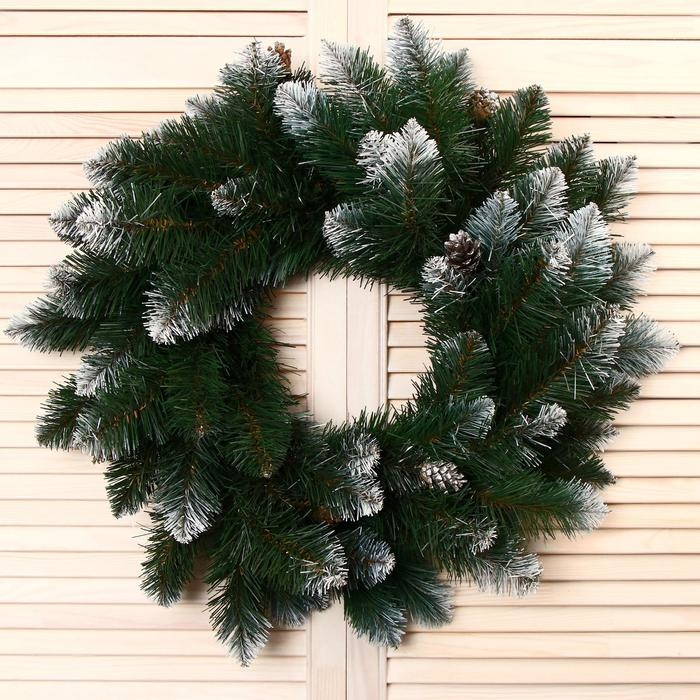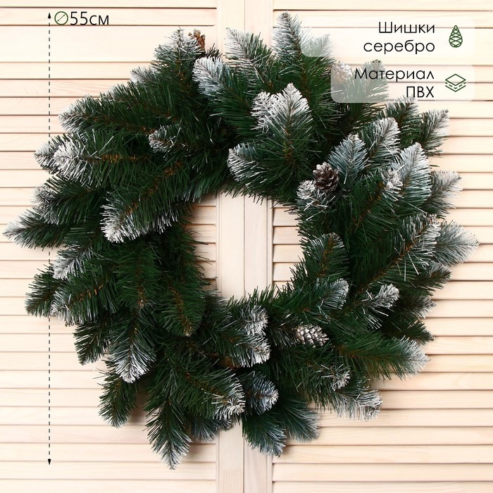 Венок "Интерьерный" белоснежный (шишки серебро) 55 см