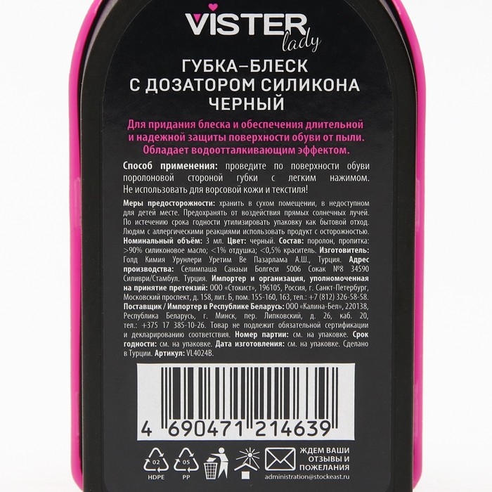 Губка-блеск для обуви Vister Lady, с дозатором силикона, Черный 3 мл
