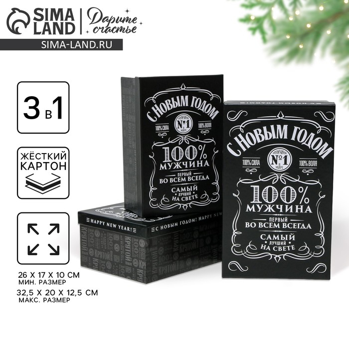 Набор подарочных коробок 3 в 1 «Алкогольный», 32,5 х 20 х 12,5 - 26 х 17 х 10 см, Новый год
