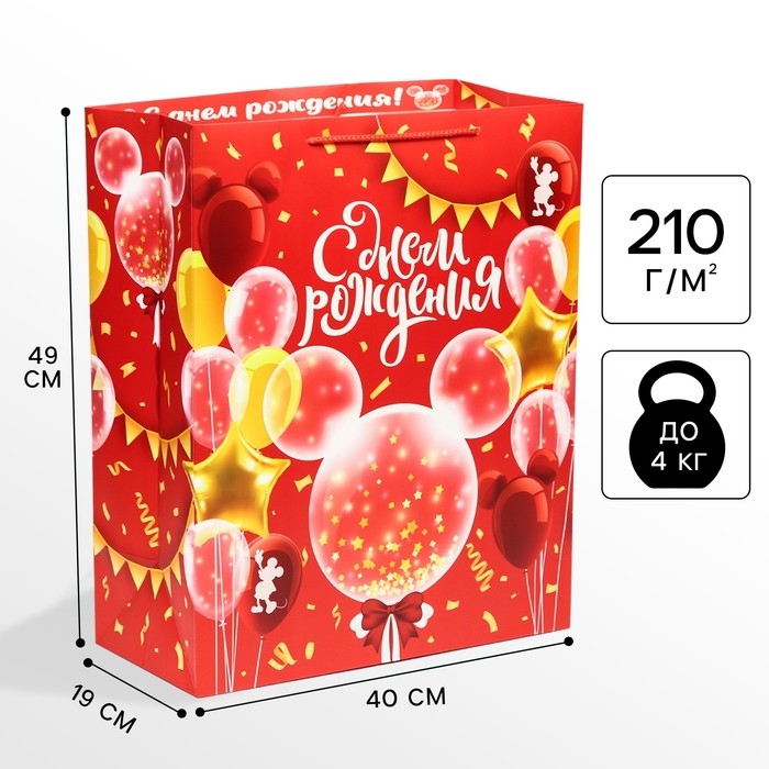 Пакет подарочный "С Днем рождения" 40х49х19 см, упаковка, Микки Маус