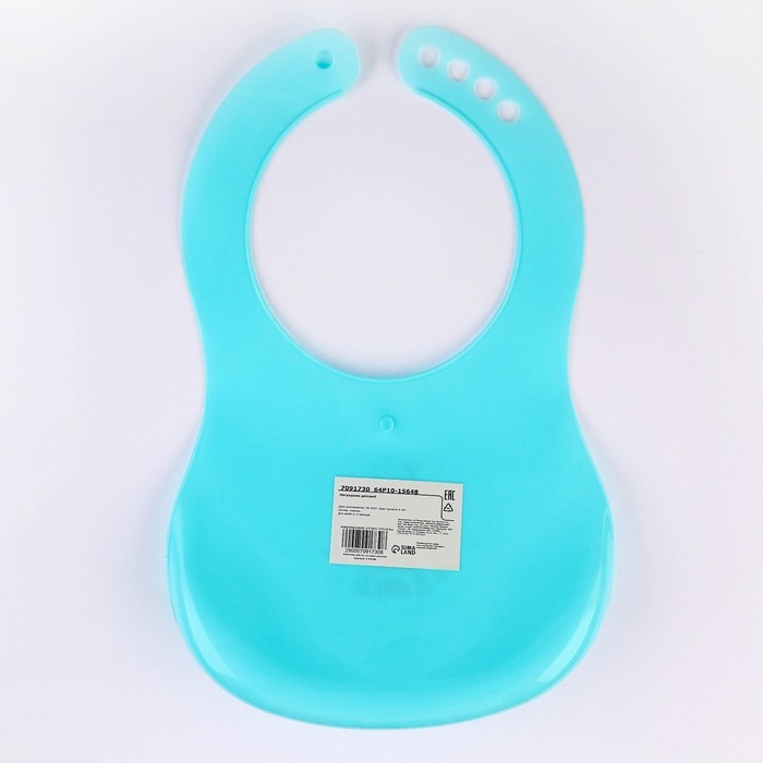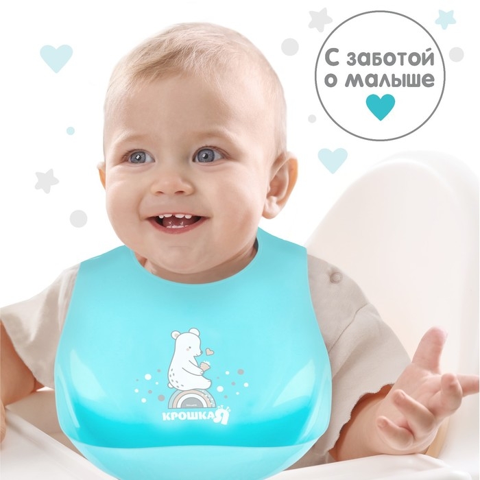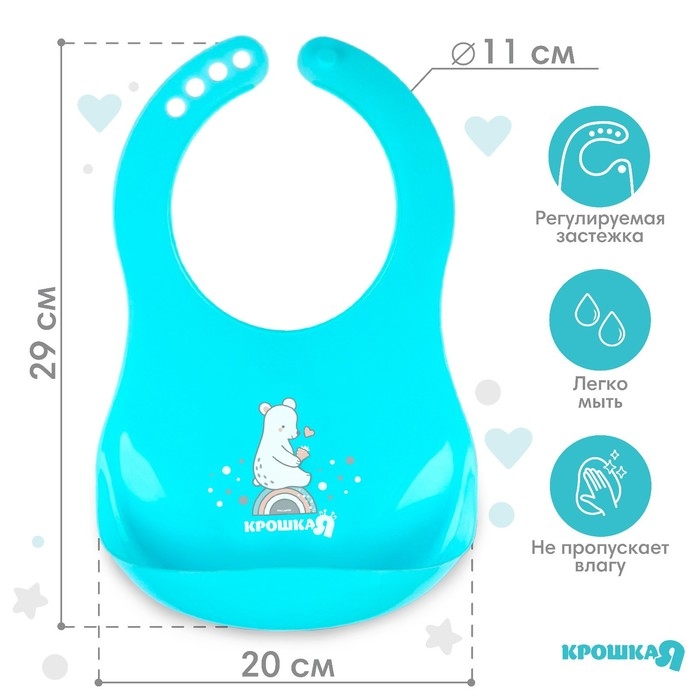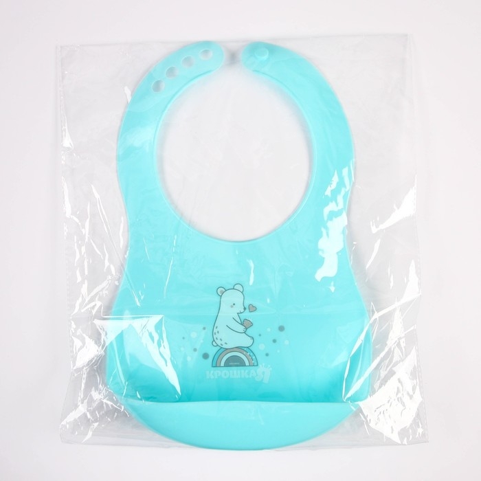 Нагрудник для кормления «Мишка» пластиковый с карманом, цвет бирюзовый