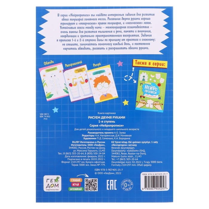 Нейропрописи «Рисуем двумя руками», 1 ступень