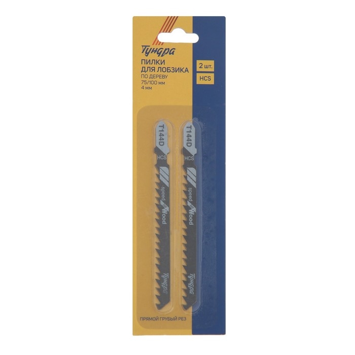 Пилки для лобзиков ТУНДРА, по дереву, прямой грубый рез, HCS, 75/100 х 4 мм, 2 шт.