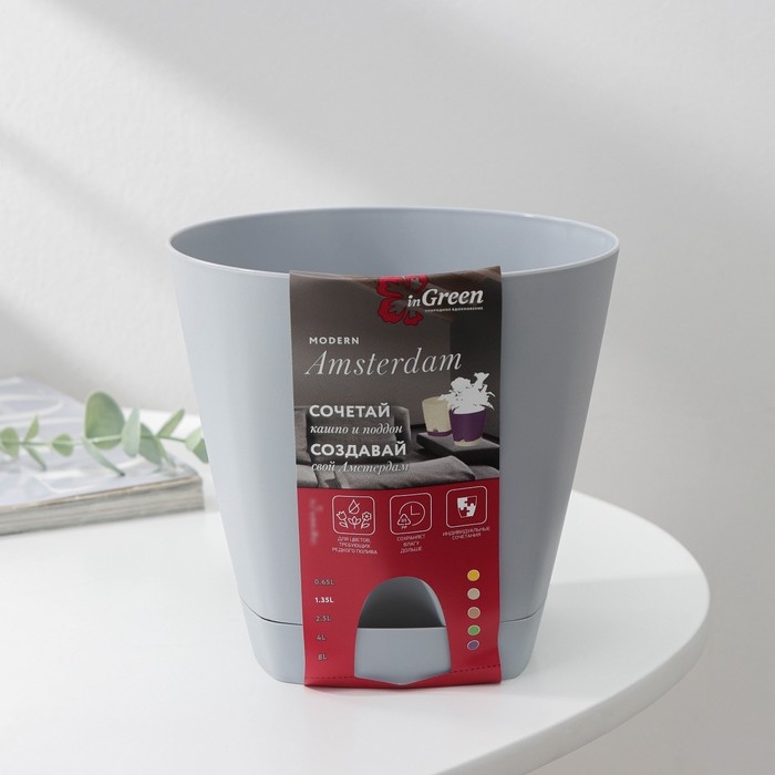 Горшок для цветов с прикорневым поливом Amsterdam, 1,35 л, d=14 см, h=13 см, цвет серый