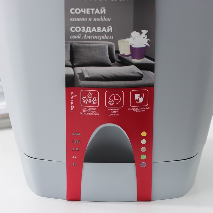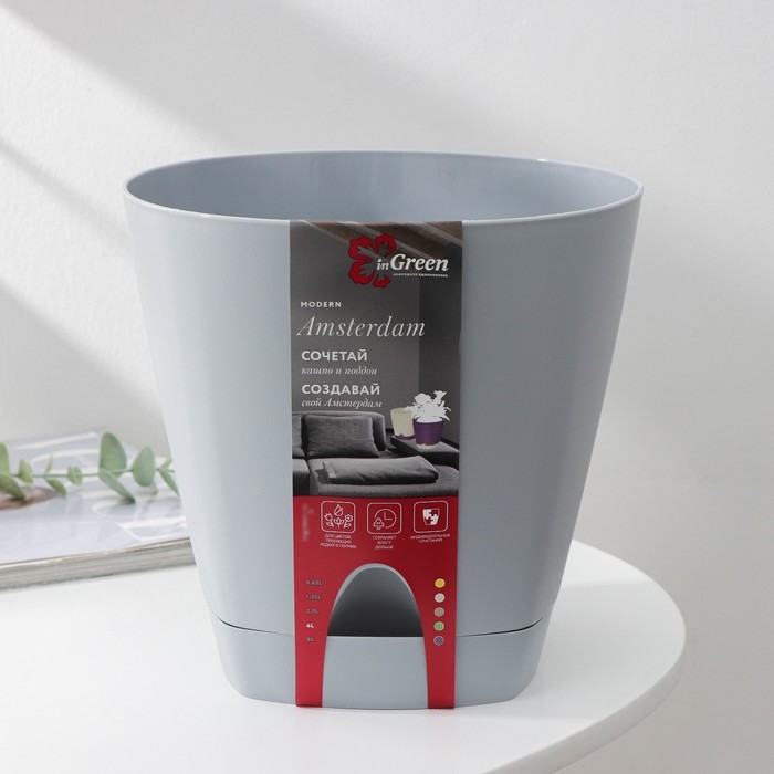 Горшок для цветов с прикорневым поливом Amsterdam, 4 л, d=20 см, h=19 см, цвет серый