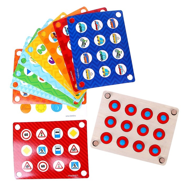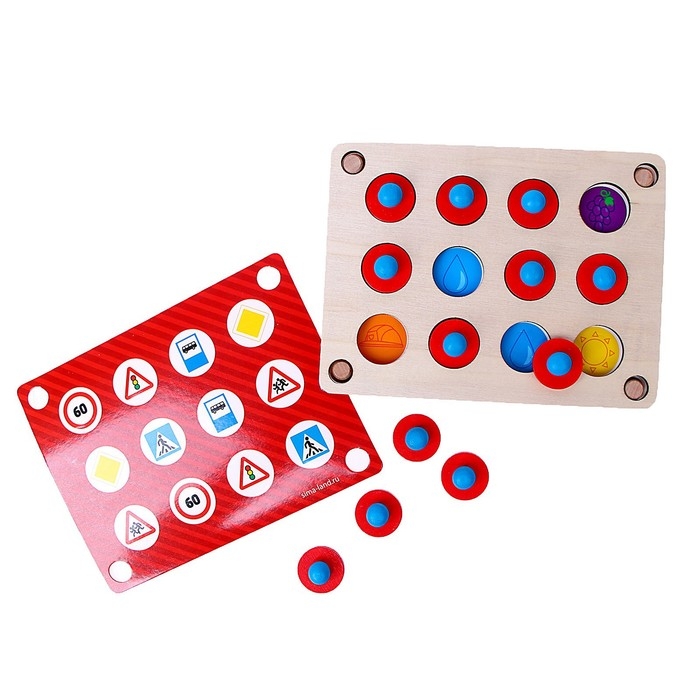 - Затем расставьте деревянные фишки в отверстия, чтобы они закрыли картинки.