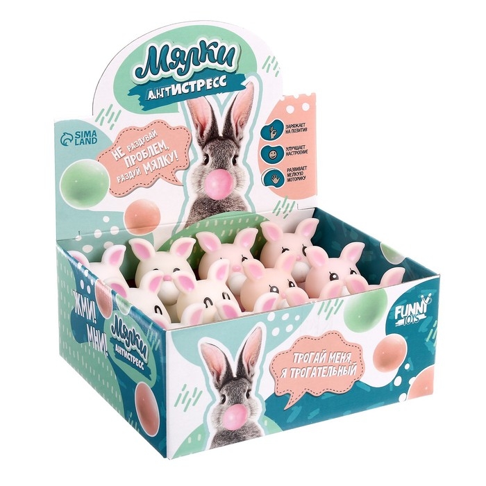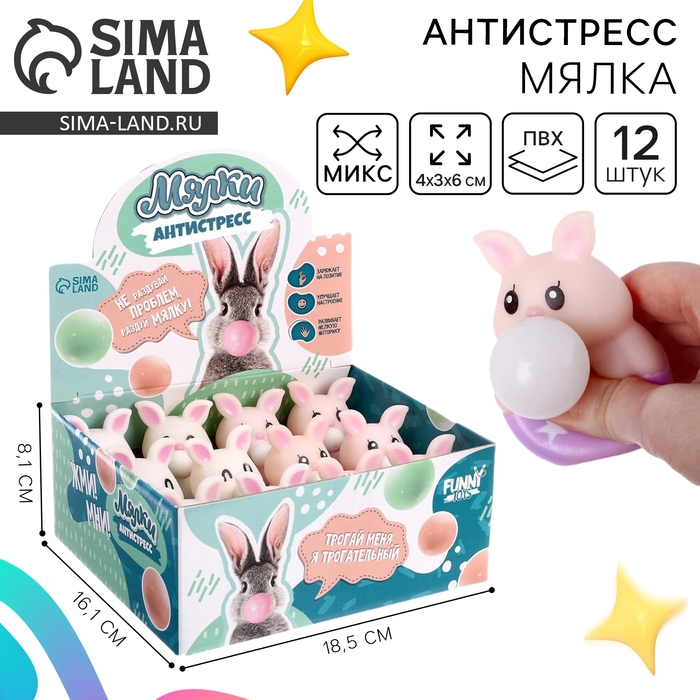 Антистресс сквиш мялка «Зайка с жвачкой», с воздухом, цвета МИКС, в шоубоксе