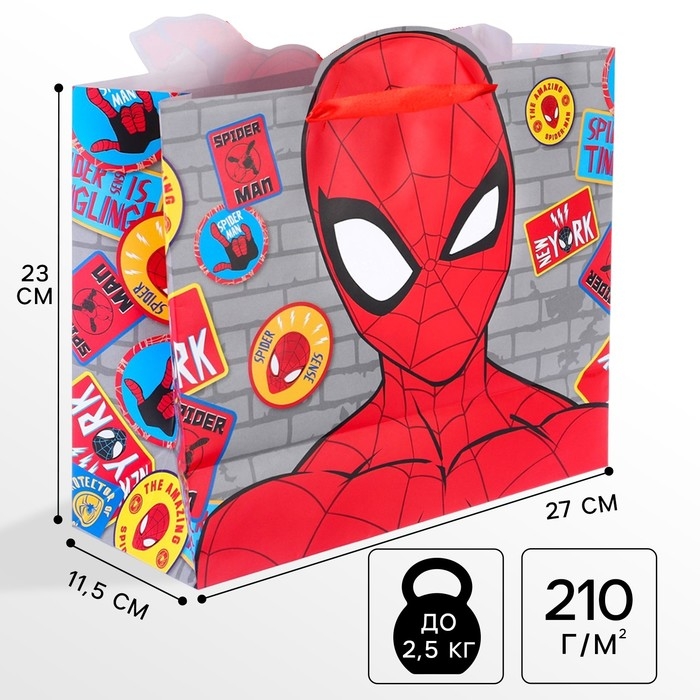 Пакет подарочный, 23х27х11.5 см, упаковка, Человек-паук