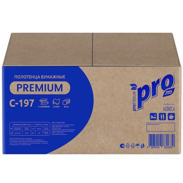 Полотенца бумажные V-сложения PROtissue С197, 2 слоя, 200 листов