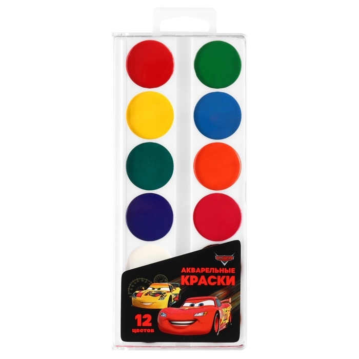 Краски акварельные "Тачки", 12 цветов, без кисти, Тачки