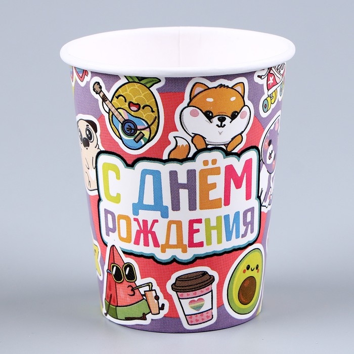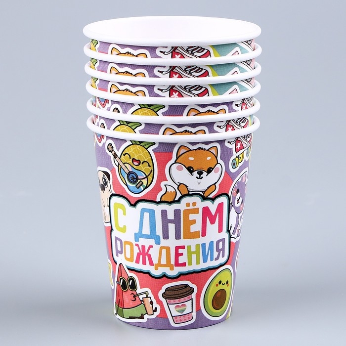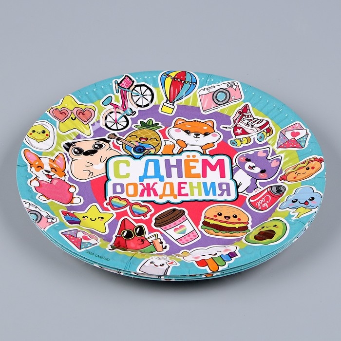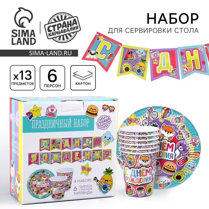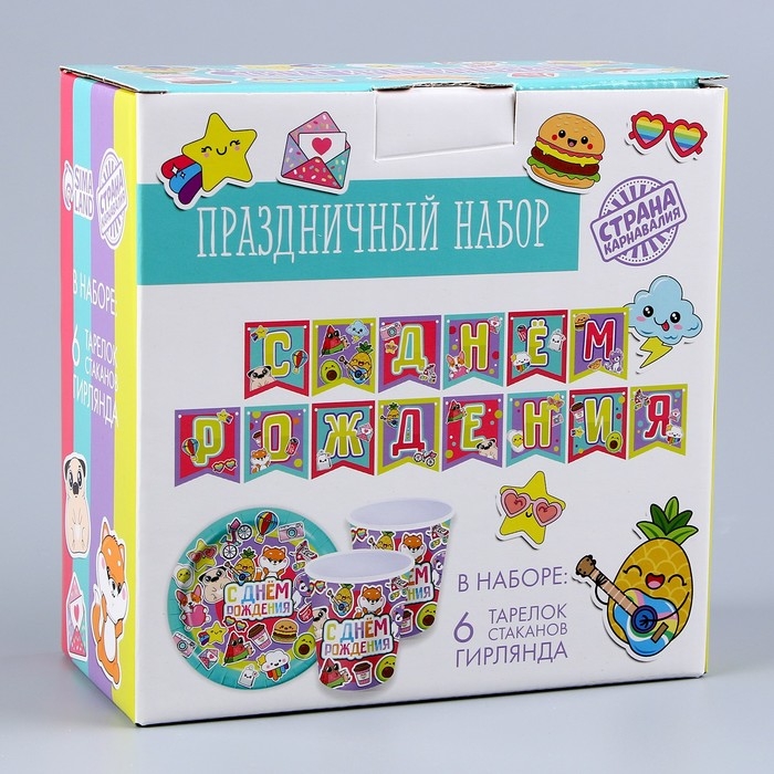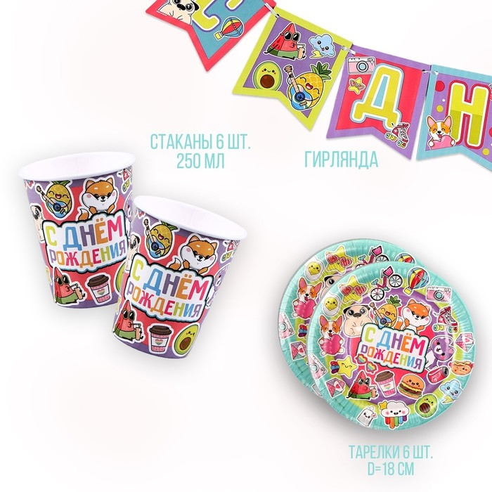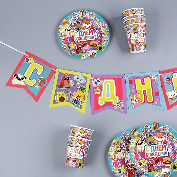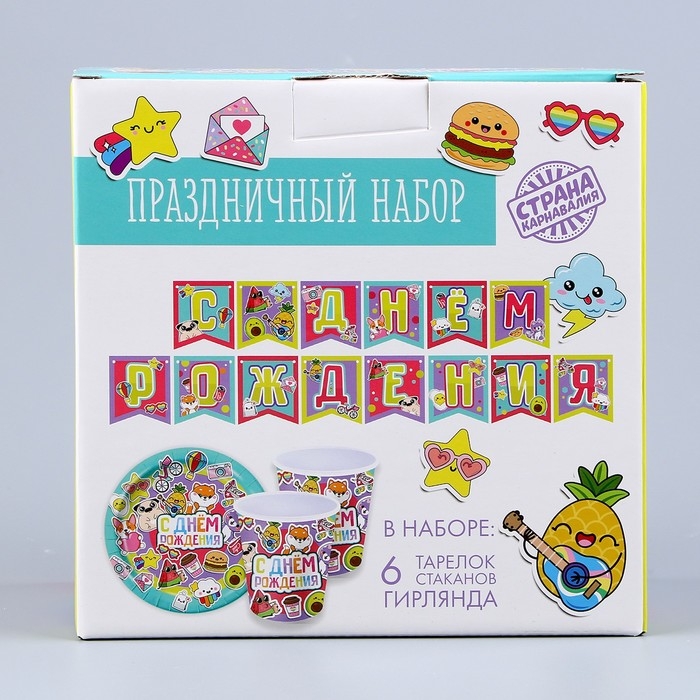 Набор бумажной посуды одноразовый Стикеры»: 6 тарелок, 1 гирлянда, 6 стаканов