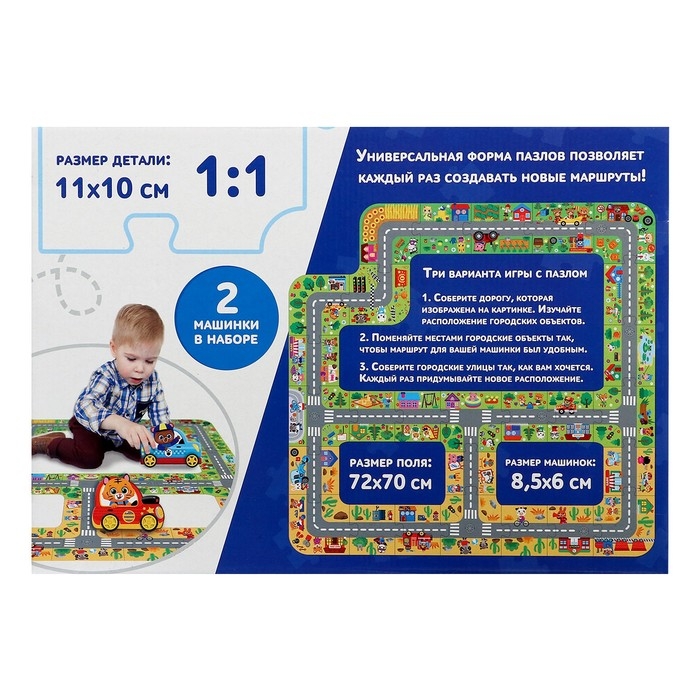 Гигантский пазл-дорога, 2 машинки, 27 крупных деталей