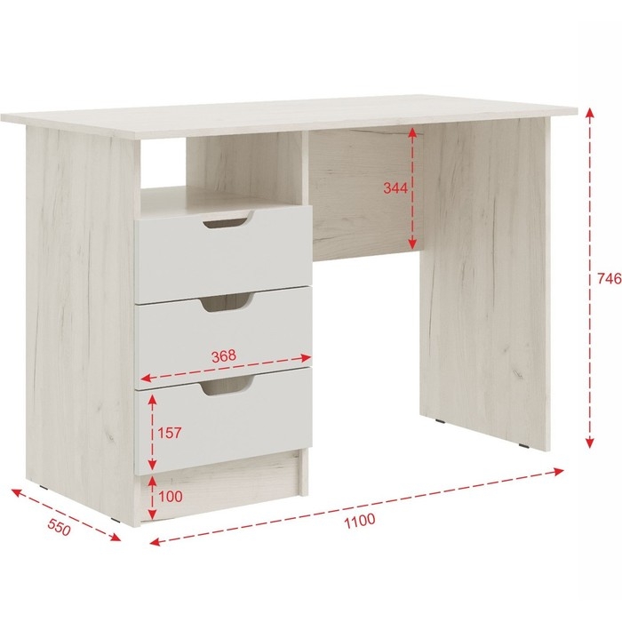 Стол с ящиками Юниор-4, 1100х550х746, Шарли белый/Дуб крафт белый
