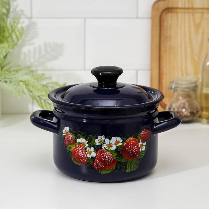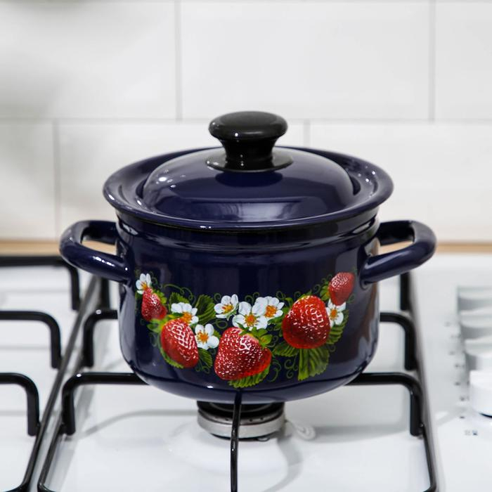Кастрюля эмалированная цилиндрическая, 2 л, индукция, деколь МИКС, цвет синий