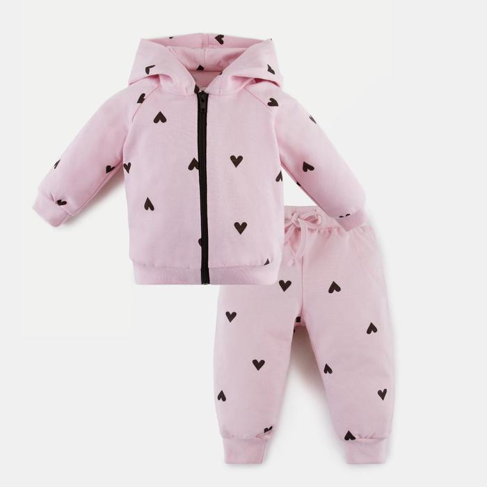 Комплект: толстовка и брюки Крошка Я "Сердечки", розовый, рост 68-74 см