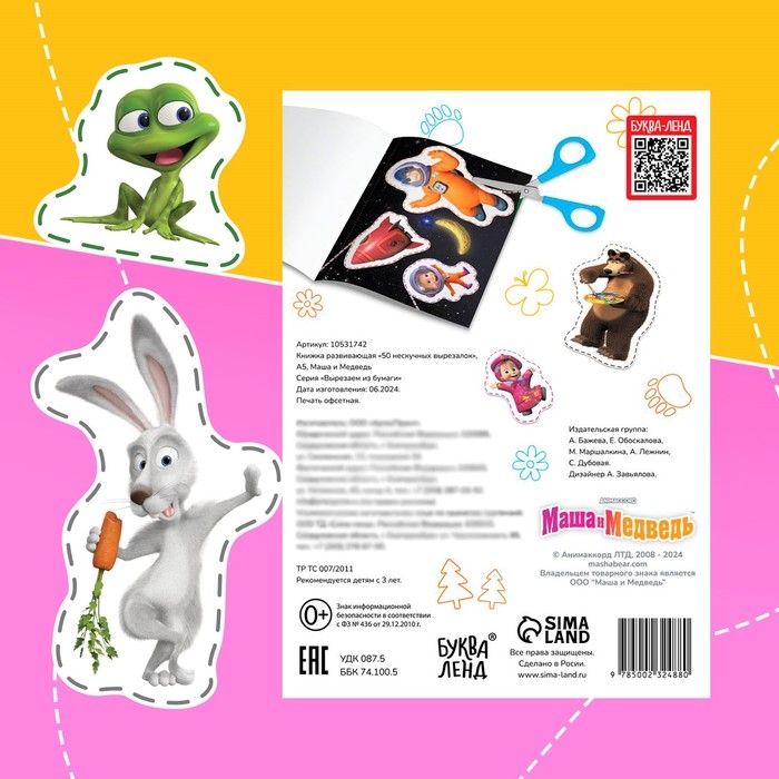 Книжка развивающая «50 нескучных вырезалок», А5, Маша и Медведь