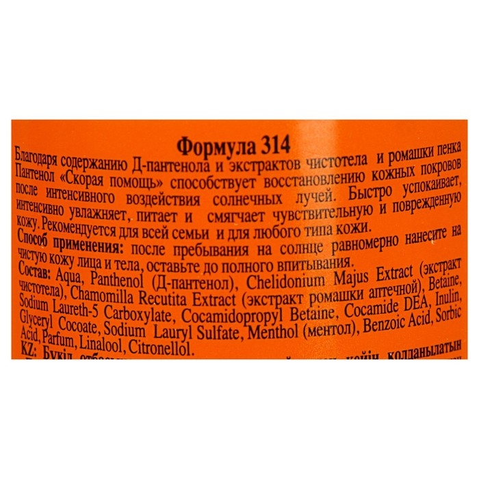 - Содержит пантенол и другие активные компоненты, которые помогают увлажнить и восстановить кожу, уменьшить шелушение и раздражение после загара.