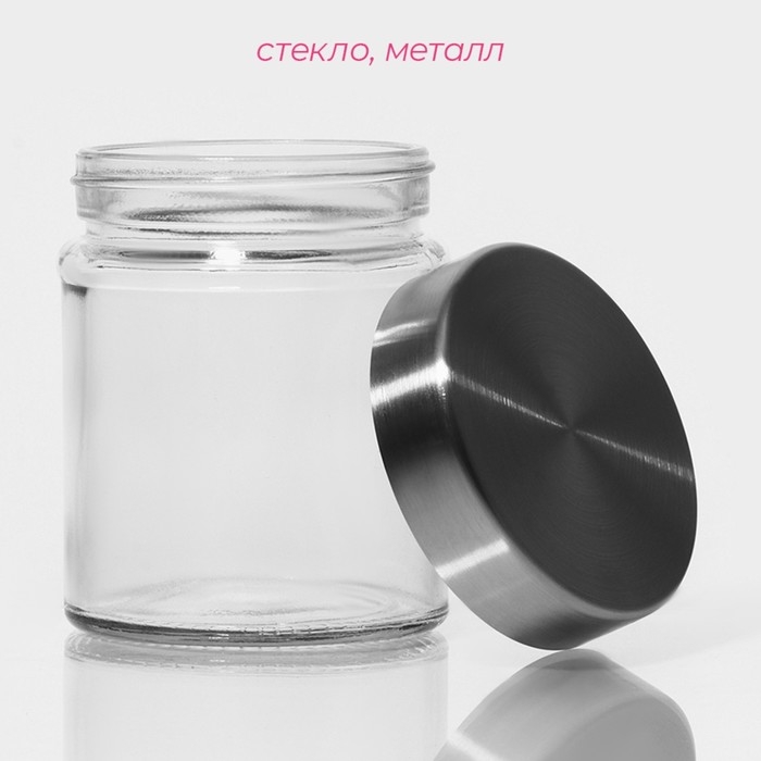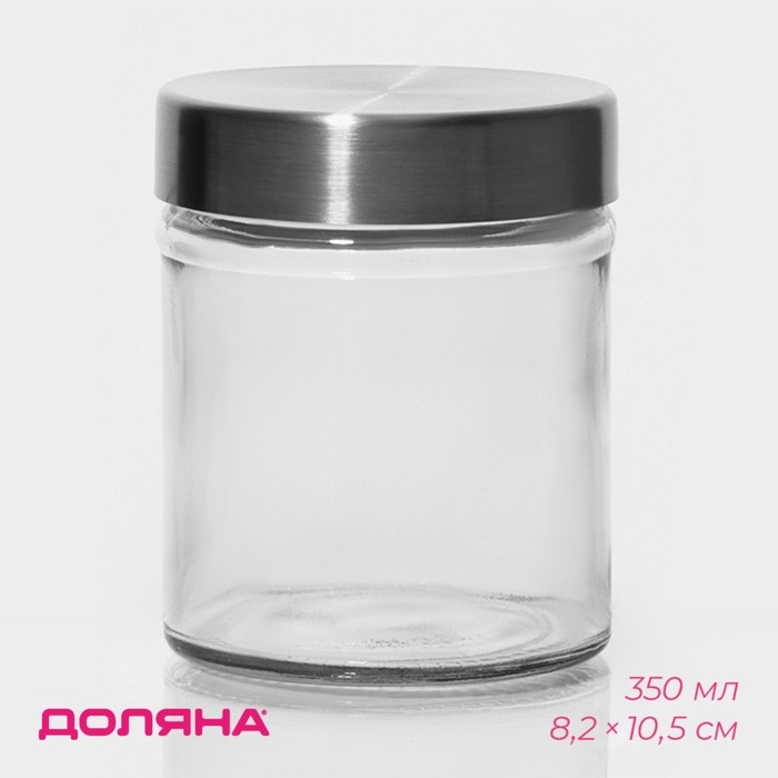 Банка стеклянная для хранения сыпучих продуктов Доляна «Премиум», 350 мл, 10×8 см, с металлической крышкой