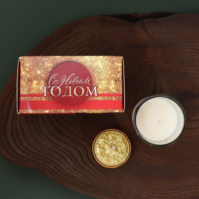 Свечи в стакане новогодние «Новый год: Благополучия в Новом году», набор, 2 шт., аромат еловые шишки