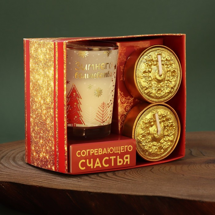 Новогодние витые свечи с декором «Тепла в Новом году!», на Новый Год, набор