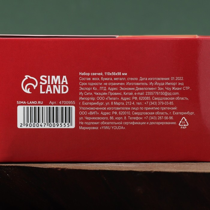 - чайная свеча (2 шт.) - 4 х 4 х 1,5 см.;