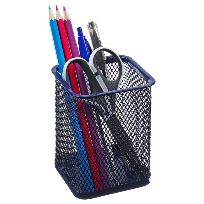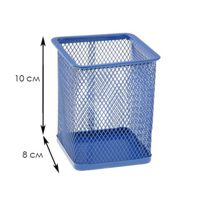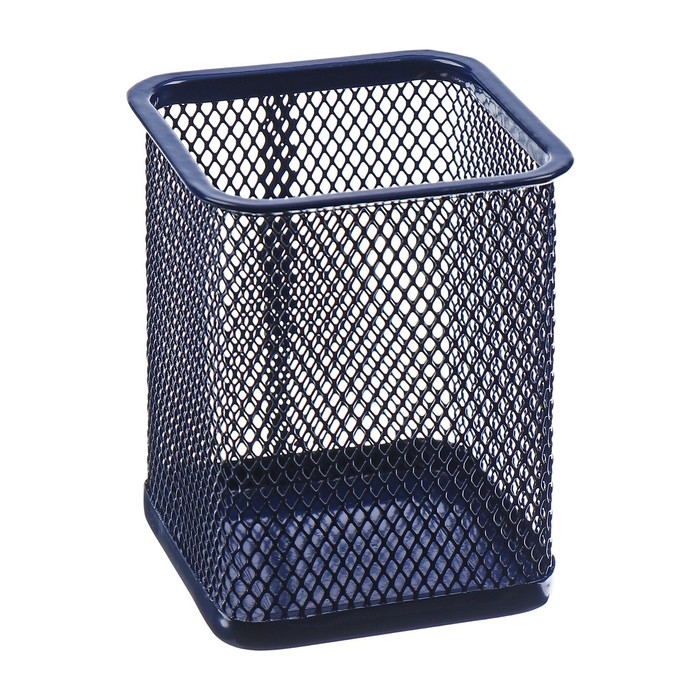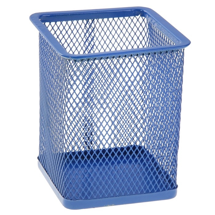 Стакан для пишущих принадлежностей, квадратный, металлическая сетка, синий