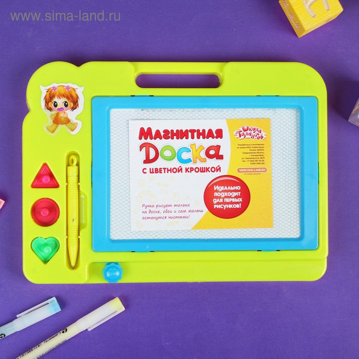 Доска магнитная с цветной крошкой, 3 штампика в комплекте, цвета МИКС
