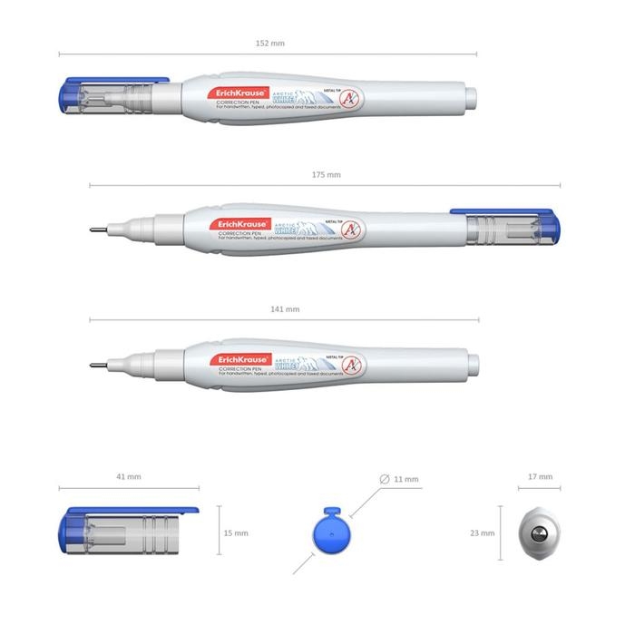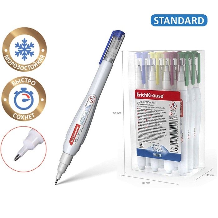 Ручка-корректор 10 мл, ErichKrause Arctic White, супер-белая, с металлическим наконечником, микс
