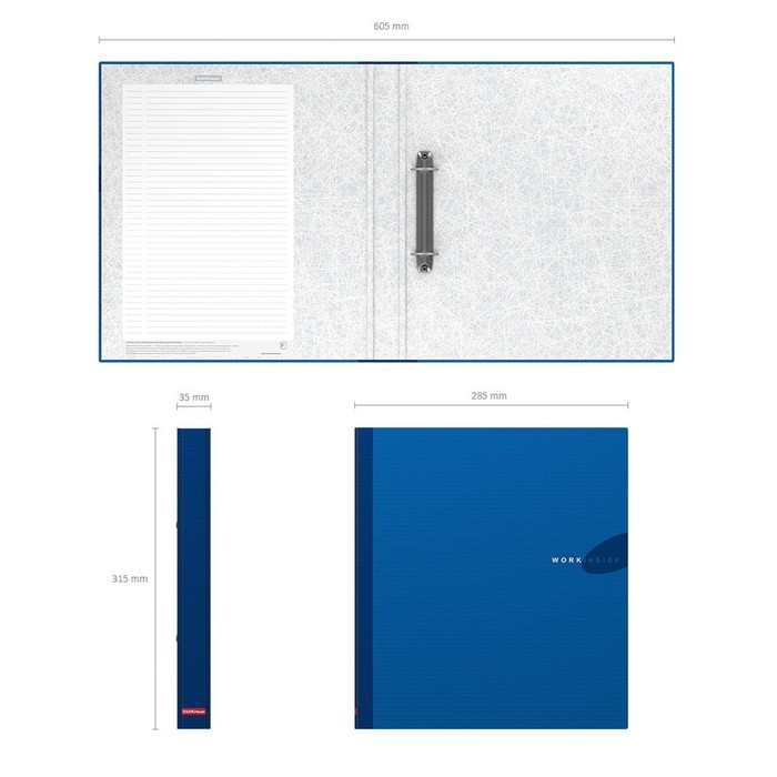 Папка на 2 кольцах А4, ErichKrause Work inside, 35 мм, 1750 мкм, синяя