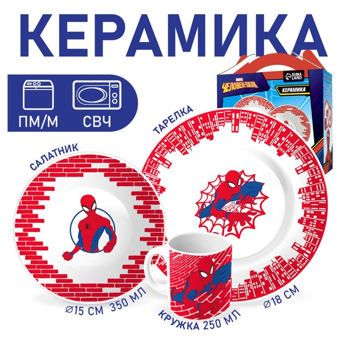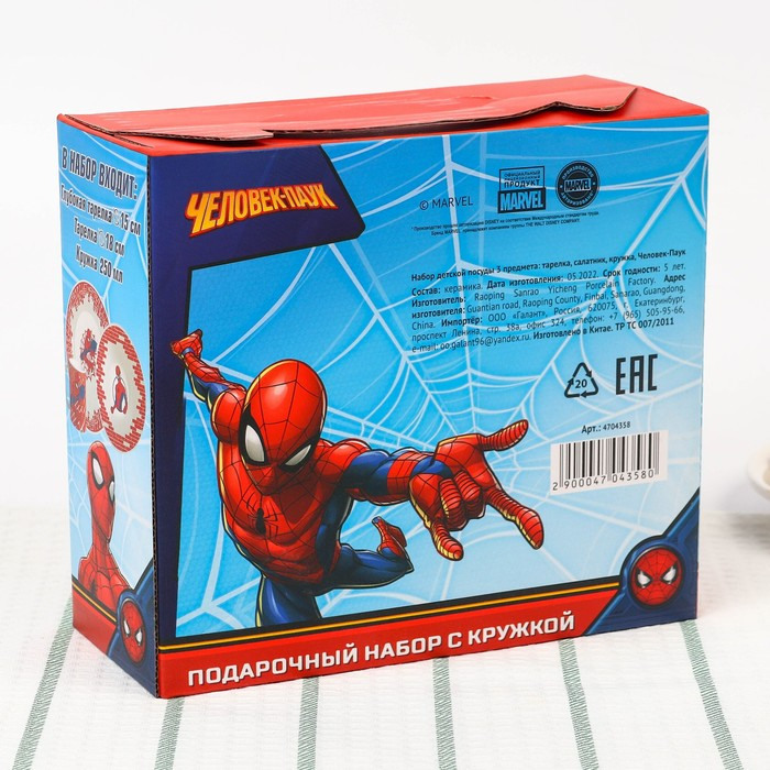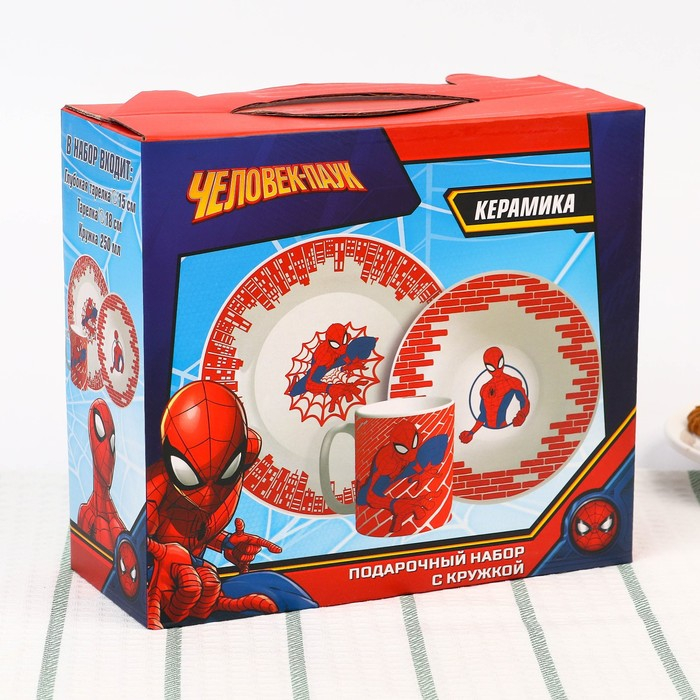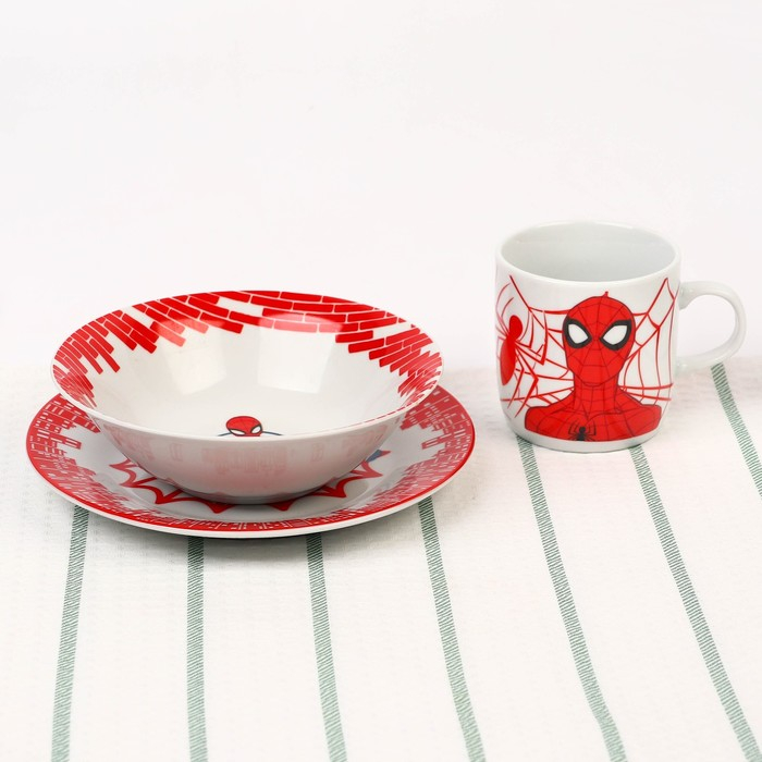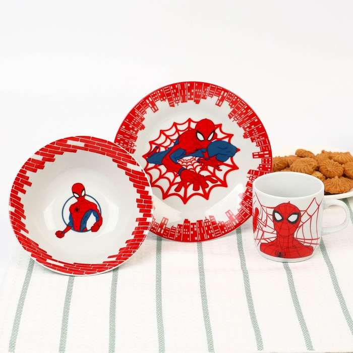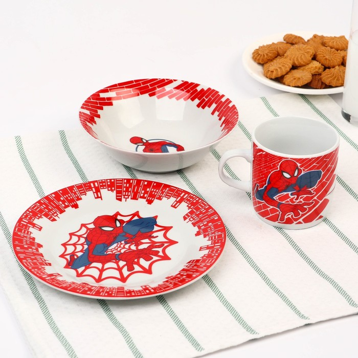 Набор посуды, 3 предмета: тарелка Ø 16,5 см, миска Ø 14 см, кружка 200 мл, "Ты - супергерой", Человек-паук