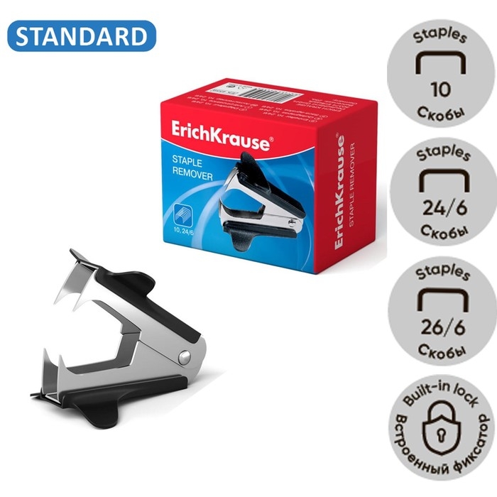 Антистеплер изготовлен из ударопрочного пластика с механизмом из высококачественной оцинкованной стали. Удобен для быстрого и безопасного удаления скоб №10, №24/6, 26/6