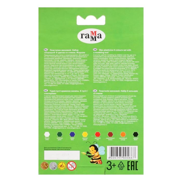 Пластилин мягкий (восковой), 8 цветов, 120 г, Гамма "Пчелка", со стеком