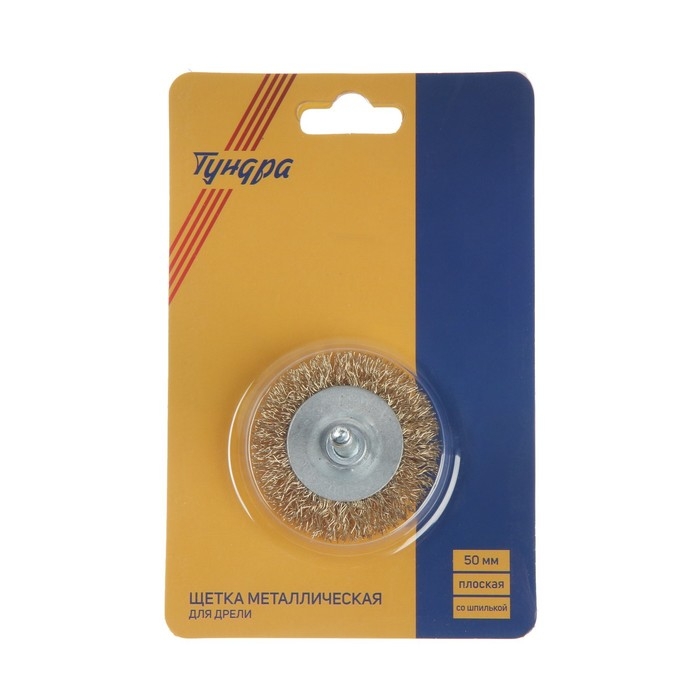Щетка металлическая для дрели ТУНДРА, со шпилькой, плоская, 50 мм